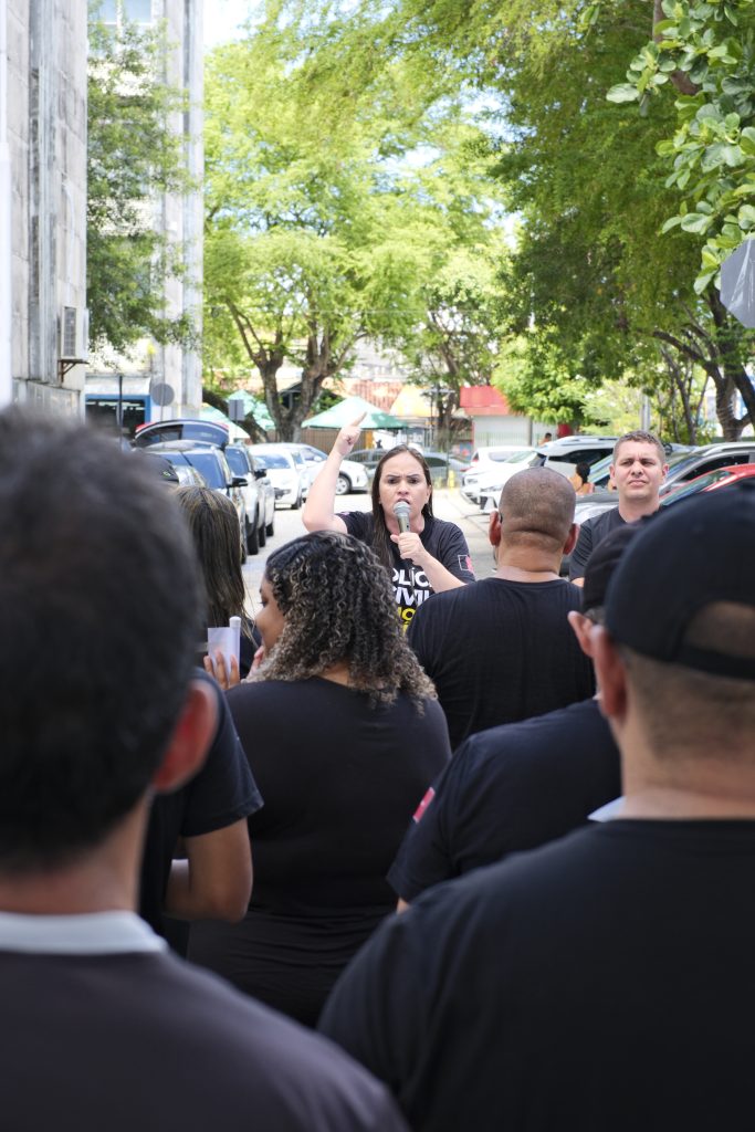“Sua voz, sua presença e seu engajamento são essenciais para darmos visibilidade à nossa pauta e para demonstrar a força da nossa categoria. Quem luta junto, vence junto!”, destacou Suana Melo, diretora da ASPOL.